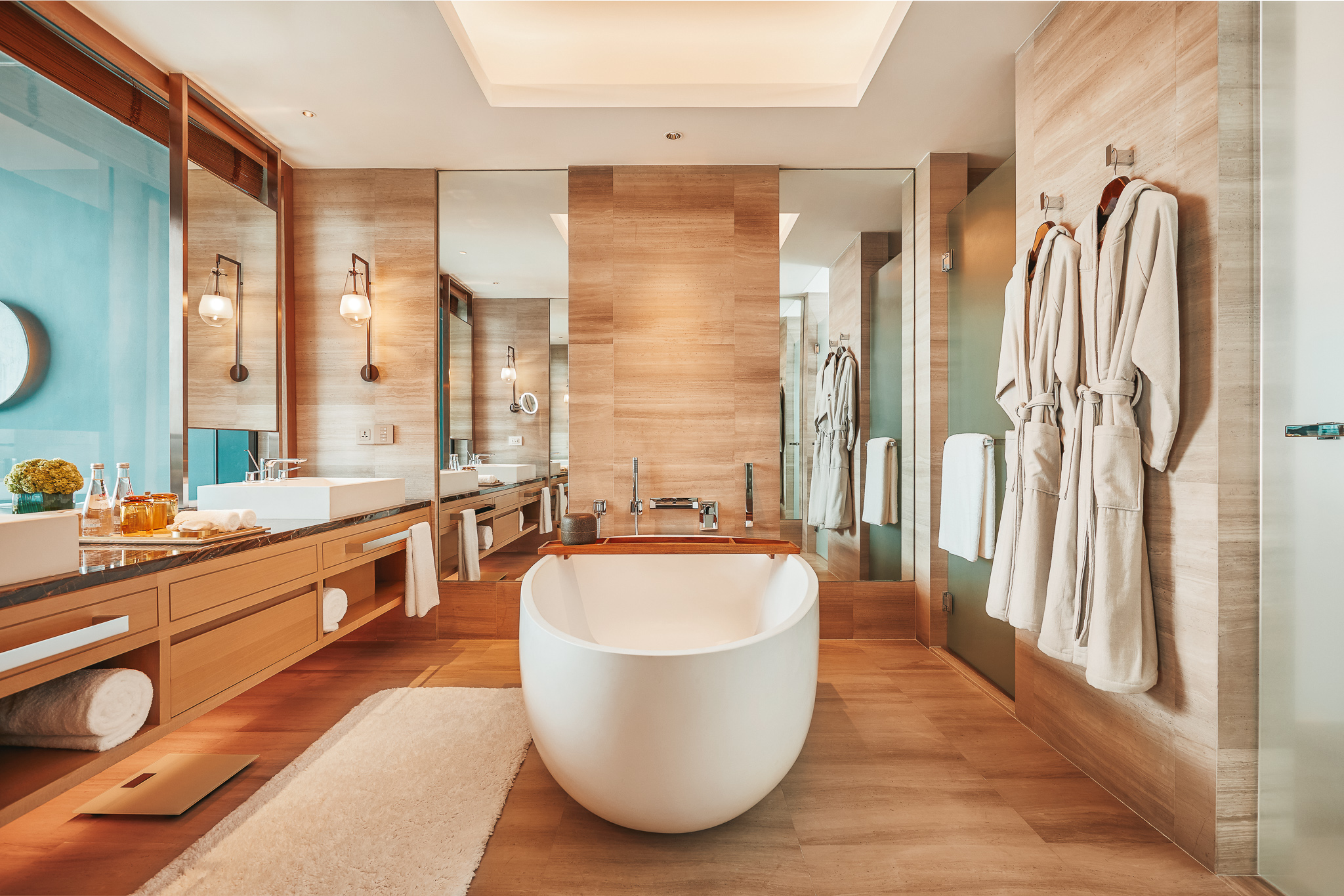 Even though Thailand has low COVID-19 numbers (a total of 3,545 confirmed cases), the hotel made some pandemic adaptations. “Working with the owner/developer, we were able to revise the design and extend the outdoor spaces of several of the suites, in some cases by 538 square feet, creating outdoor lounge terraces with sweeping views of the riverfront,” Blanco says.