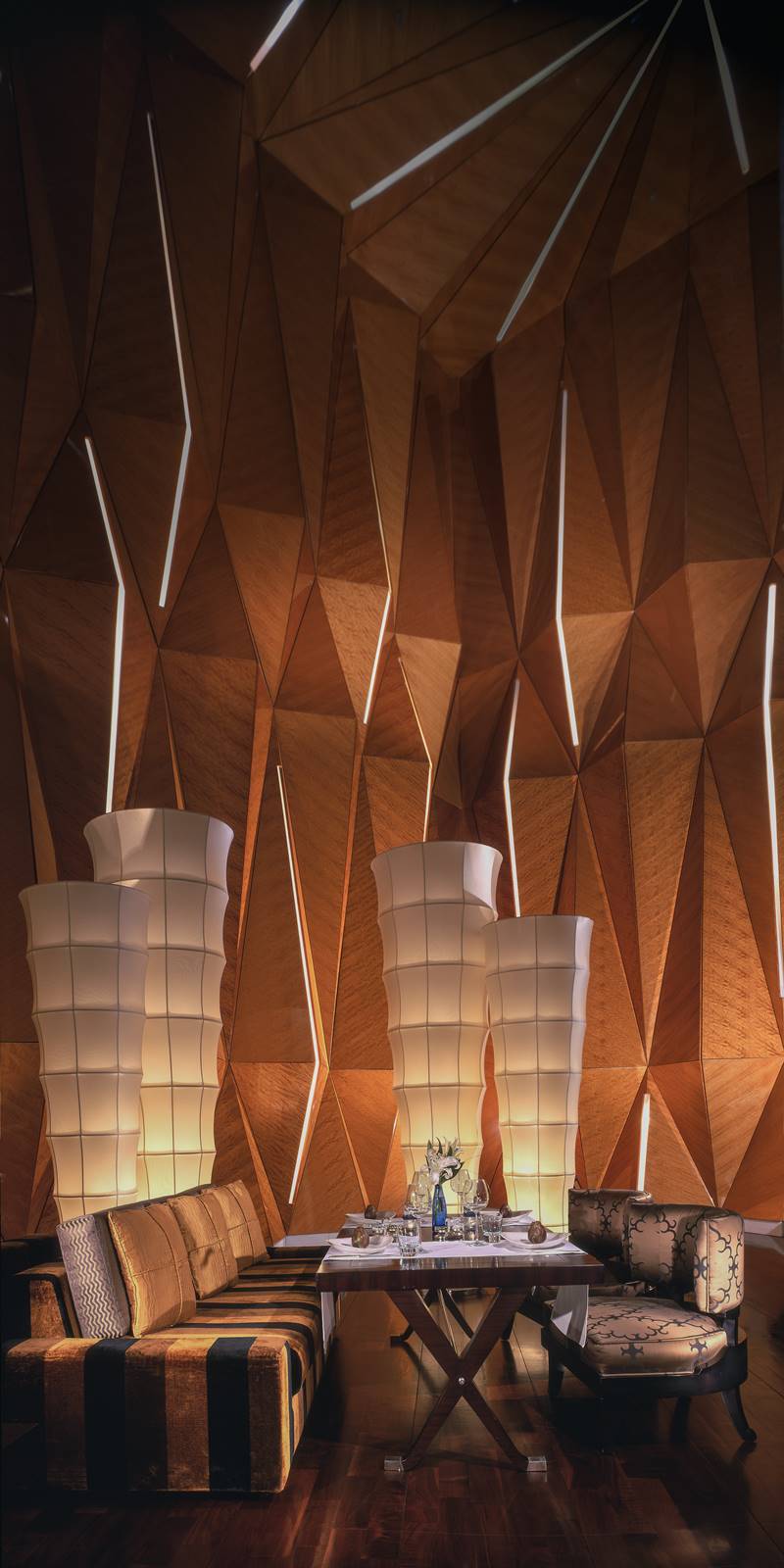 Expansive interior spaces can also present an interesting challenge for lighting designers, especially when the aim is creating synergy between different areas within a large space. PLD approaches this by establishing a hierarchy of the lighting within a large room. “We downplay the ambient light, giving precedence to the more important features such as art, or areas which may require more light such as a dining area or writing desk. A lighting control system plays a hugely important role in allowing us to adjust lighting levels through dimming. A high quality dimming system is crucial to the success of any high-end hotel or residential space.”